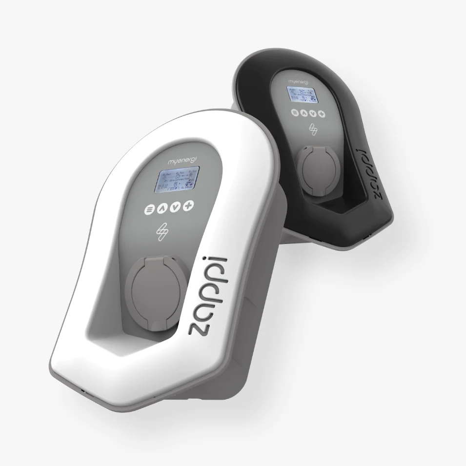 ZAPPI EV Chargers by Myenergi available as Tetherered or UnTethered, Black or White.